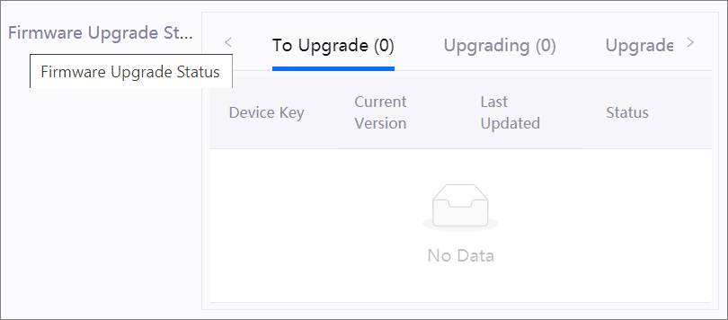 This element is integrated with EnOS Device Connectivity & Management Service to display the upgrade status of a firmware in a table format. This element is usually used in a User Task after the Upgrade Firmware task to display its upgrade status.