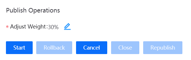 When the publishing is completed, if it is successful, you can change the weight for the new version in the Publish Operations section and start the publishing again.
