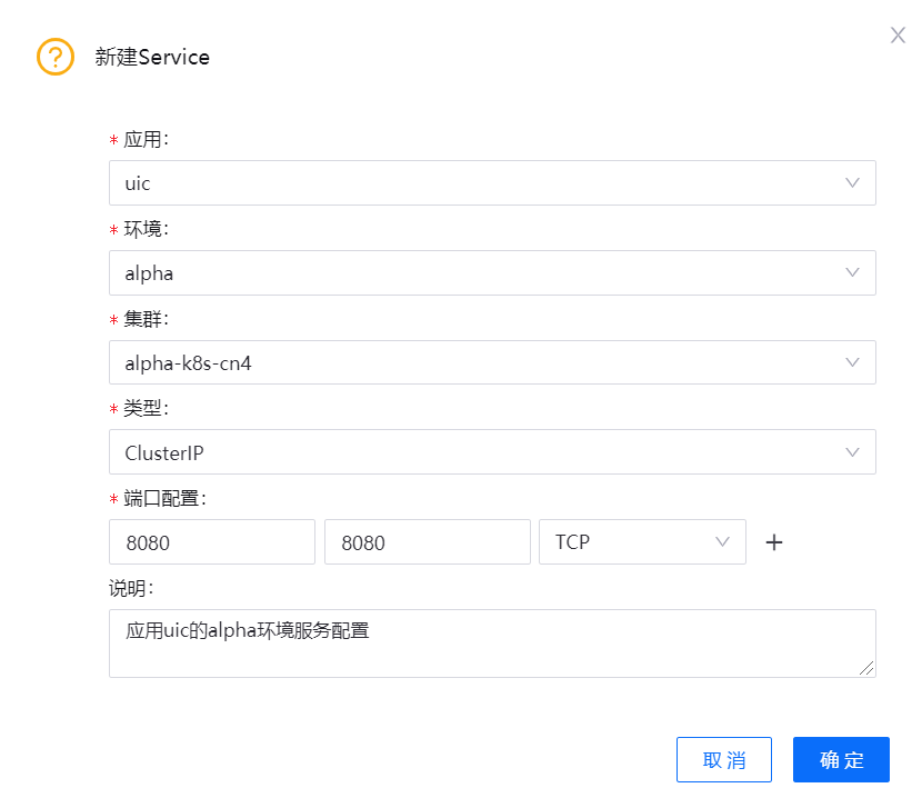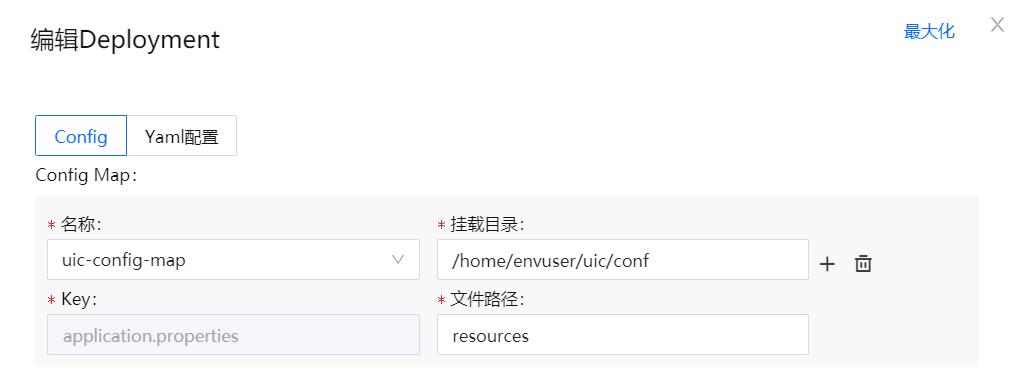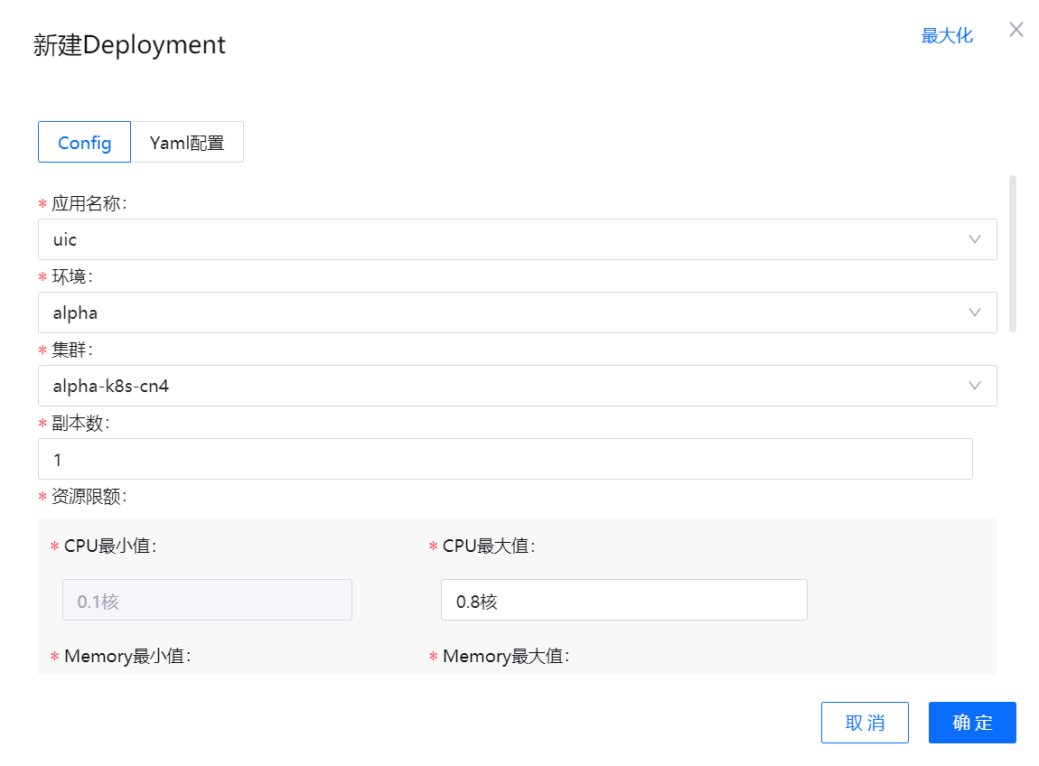 该步骤为应用 uic 创建部署配置,完成部署应用所需要的资源详细信息。