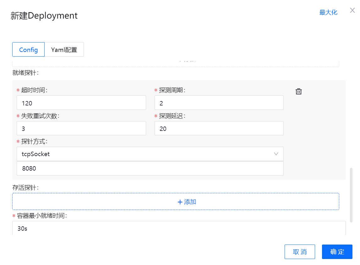 CPU最小值:0.1 核;CPU 最大值:0.8 核