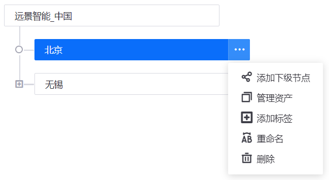 在要配置的节点旁,将鼠标悬停在省略号 (…) 上并选择 管理资产。