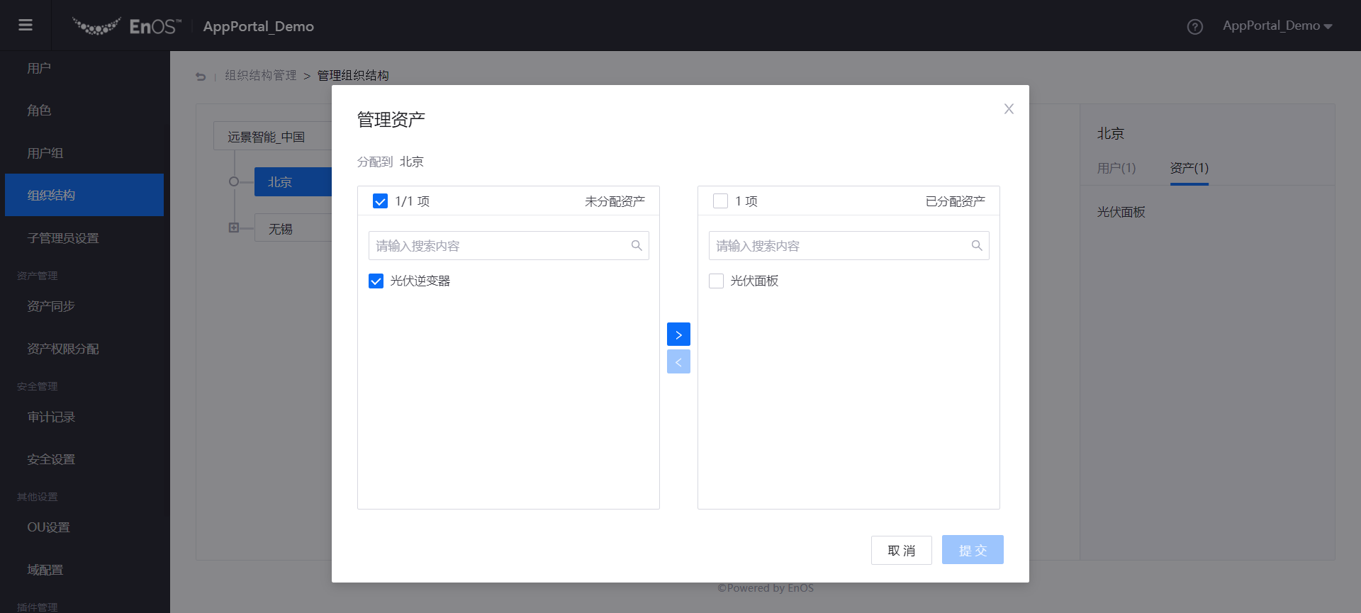 你可以将从 EnOS 同步过来的资产分配到组织结构节点。