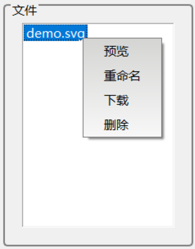 7. 上传完成的SVG文件会显示在 文件 一栏中。右键点击已上传的SVG文件,选择 预览。如下图所示: