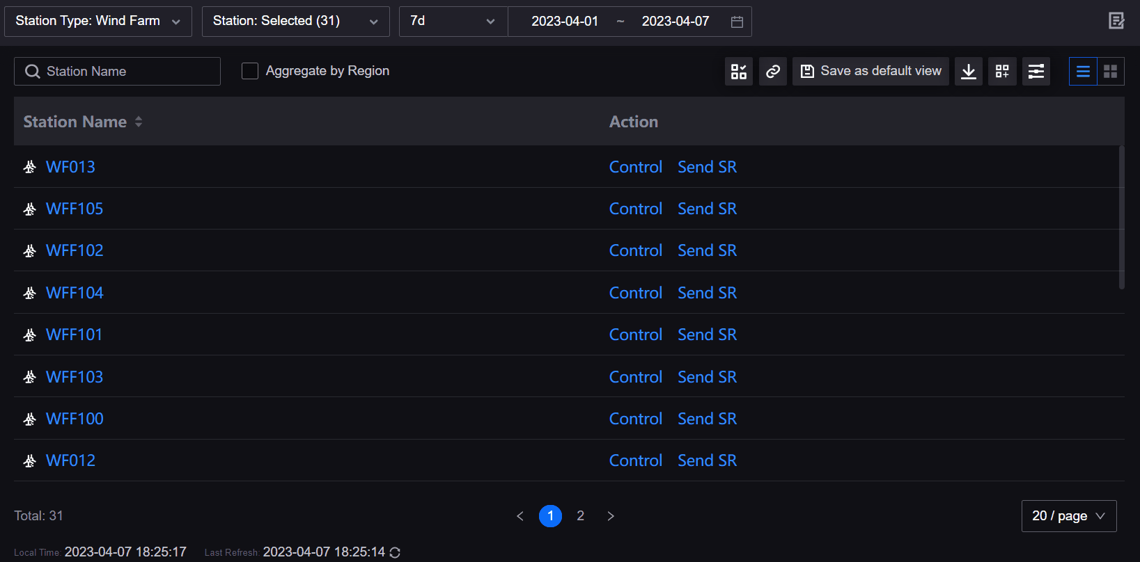 Aggregate assets by region in Asset List. You can select the region names to expand or collapse the asset information in the region.