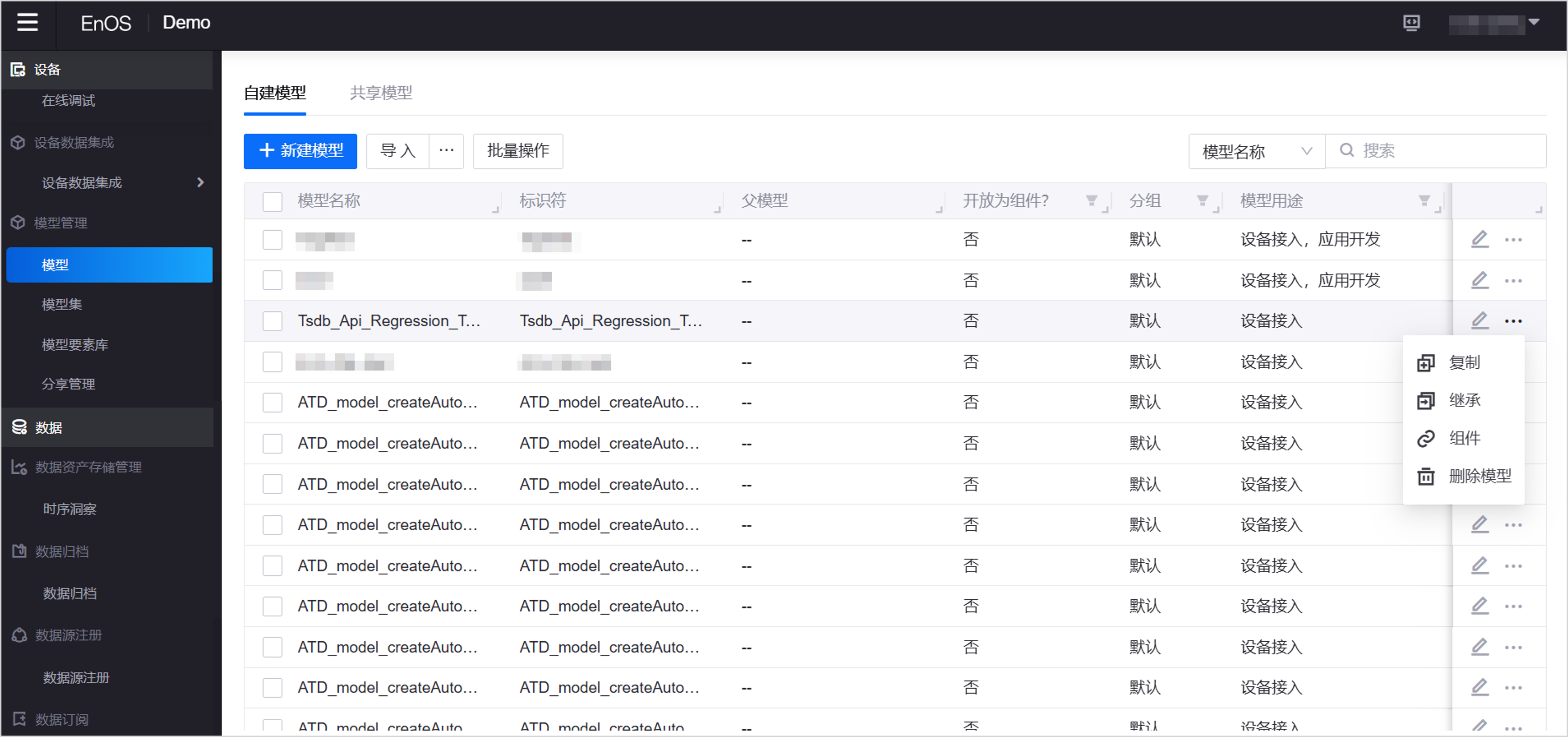 在 EnOS 3.0.0 中,我们基于 EnOS Cloud 推出全新的统一建模工具:模型管理(Model Management),为设备接入和应用开发提供统一、灵活、快速复用和共享的建模能力,以及不同领域模型的全生命周期管理。借助模型管理,你可以实现: