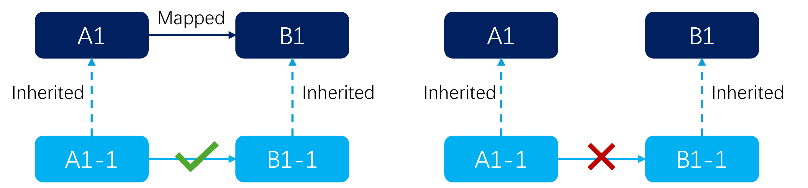 Example: If B1 maps A1, you cannot also map A1-1 or A1’s ancestors in B1.